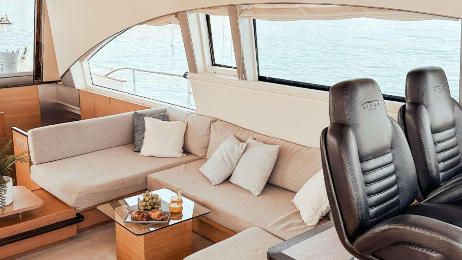En su interior, el yate ofrece un ambiente moderno y acogedor, con un salón panorámico, cocina totalmente equipada y cuatro cabinas elegantes con capacidad para alojar hasta 8 invitados con el máximo confort. Es una opción perfecta para familias, grupos de amigos o escapadas en pareja. A bordo, la tripulación profesional garantiza un servicio personalizado y discreto, con todas las comodidades necesarias para que la única preocupación sea disfrutar del mar.
