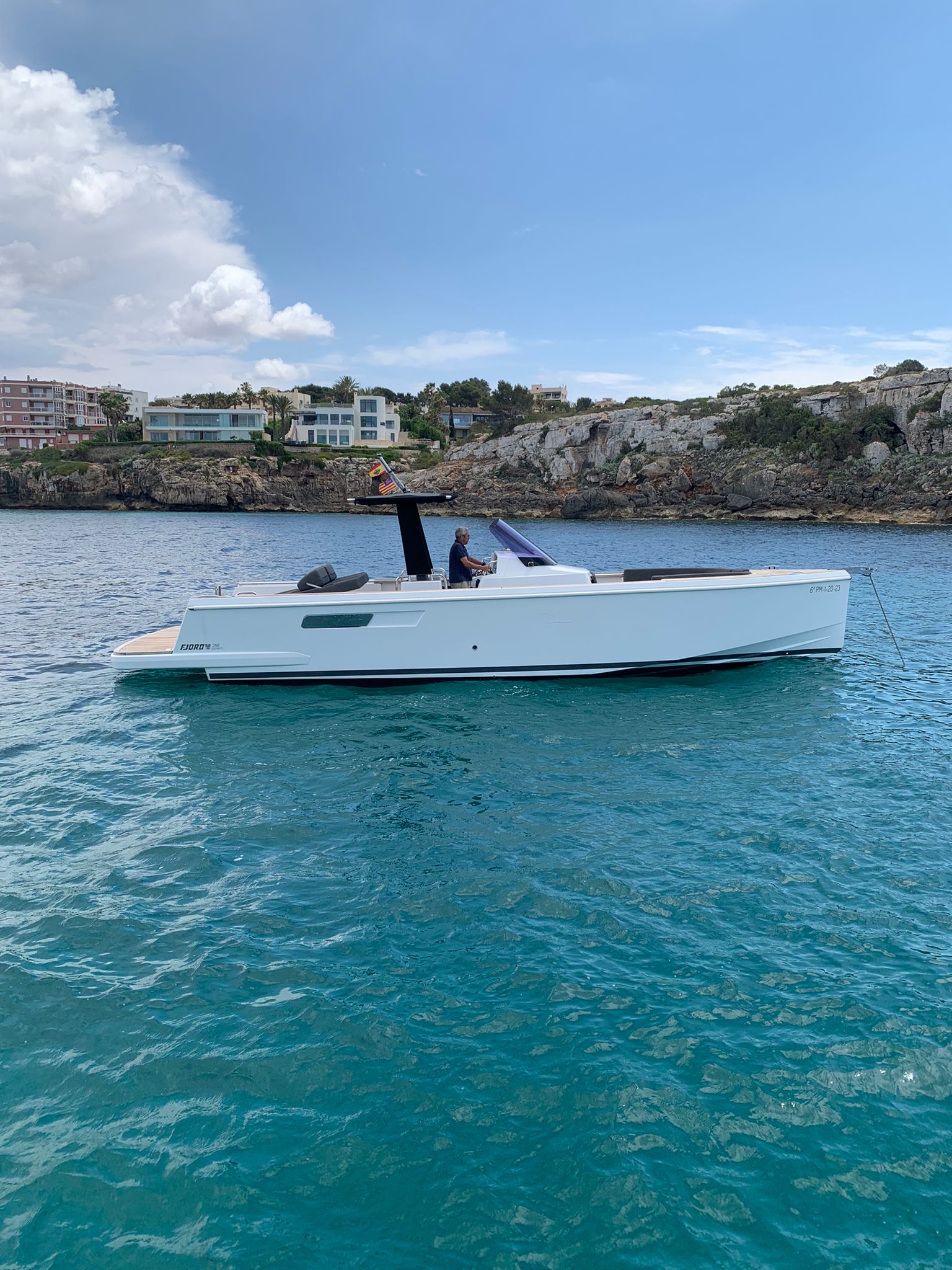 VER TODAS LAS IMÁGENESEl Fjord 36 Open es una embarcación premium que combina líneas modernas con una navegación potente y segura. Ideal para excursiones de día, ofrece una experiencia cómoda y elegante para grupos reducidos que deseen descubrir las calas más exclusivas de la isla.
