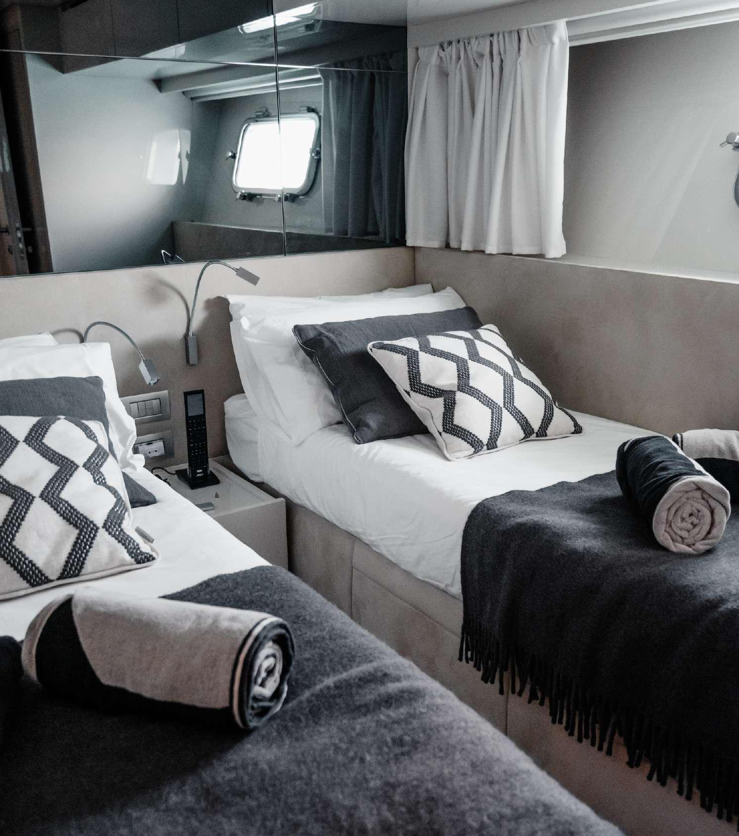 Gracias a su tamaño, distribución inteligente y potente rendimiento, este yate se adapta a todo tipo de experiencias: escapadas románticas, jornadas con amigos o vacaciones familiares inolvidables.
