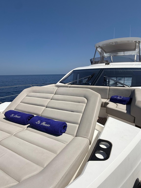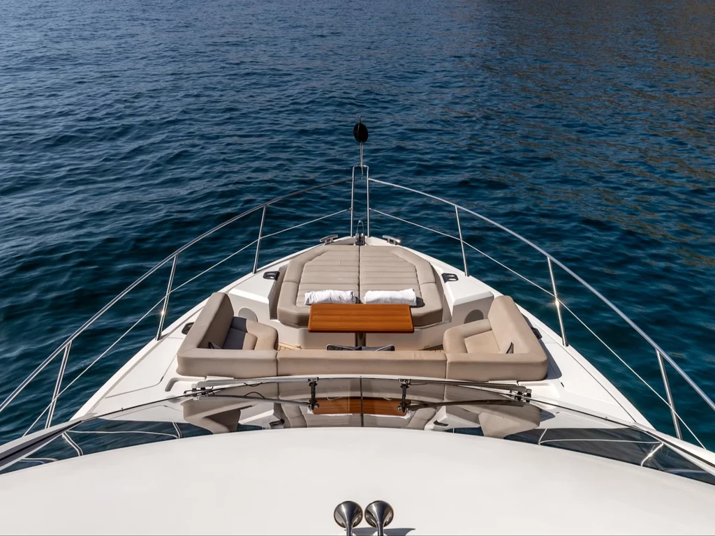 - Flybridge: Espacio exclusivo con sofás, nevera, mesa y puesto de mando.